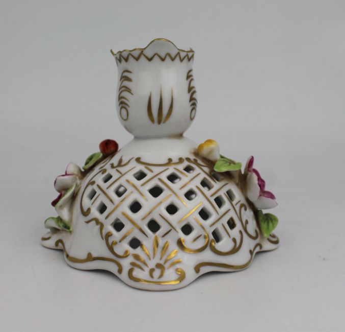 Description: Vintage Ornate Dresden Candlestick.