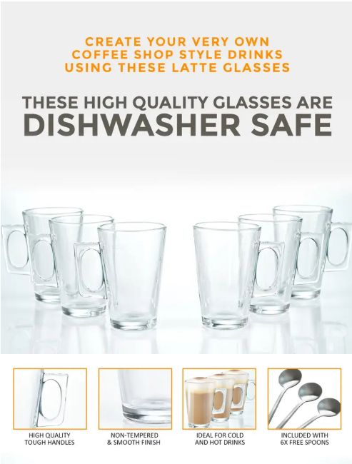 Perfect for entertaining guests or enjoying a personal coffee moment, these latte glasses combine style, durability, and practicality for the ultimate home coffee experience.