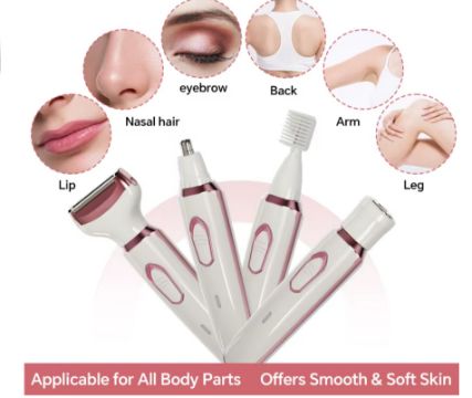 • 4-in-1 grooming kit: face, nose, legs, underarms, bikini line