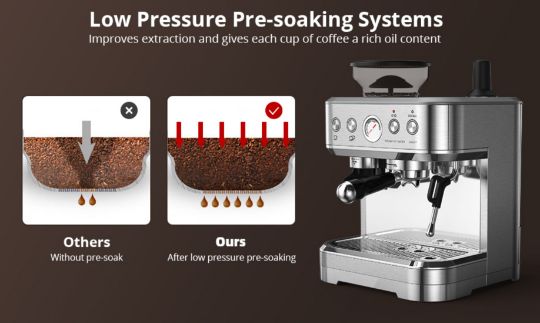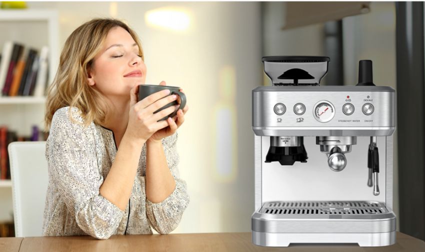 Stylishly crafted with a sleek stainless steel body and intuitive controls, this espresso machine combines elegant design with practical performance — ideal for home or office coffee lovers.