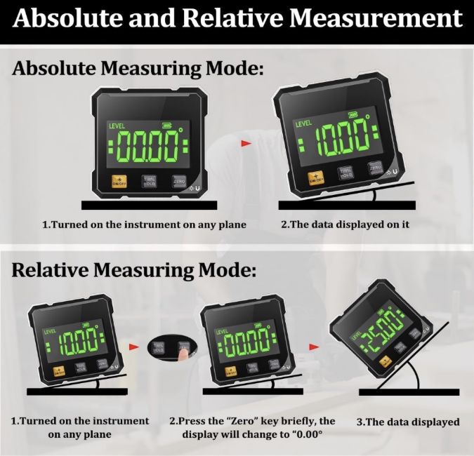 • High Precision Measurement: 360° range with ±0.2° accuracy and 4 × 90° reference angles