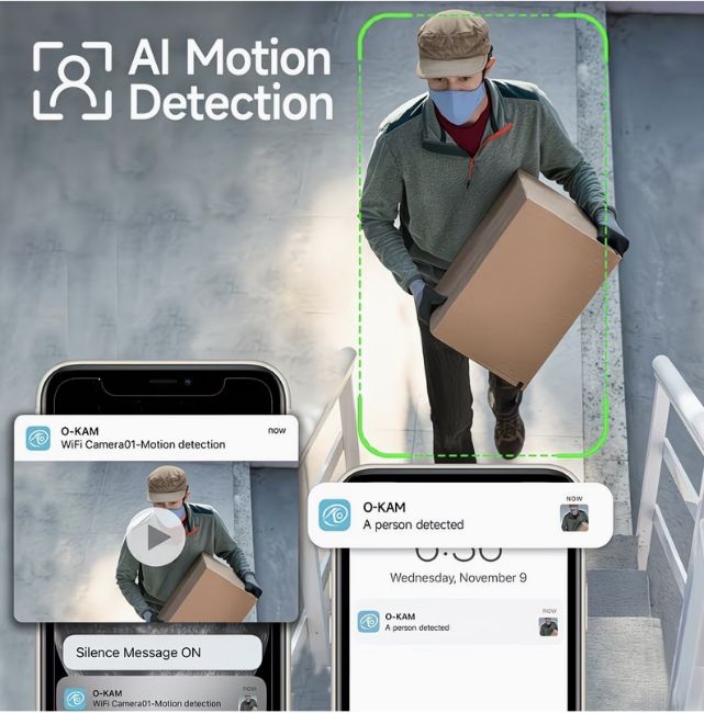 Advanced AI motion detection helps reduce false alerts by distinguishing between people and other moving objects. Real-time notifications keep you informed instantly through your mobile device. Two-way audio allows you to speak and listen directly through the camera, whether greeting visitors or deterring unwanted activity.