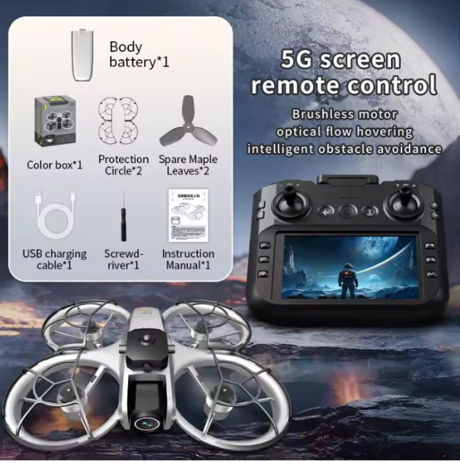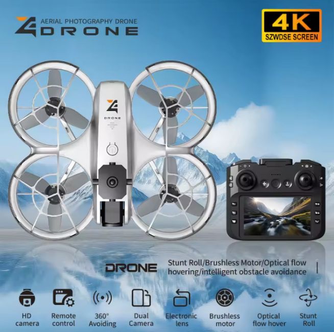 Take your aerial photography to the next level with this professional-grade dual-lens 4K WiFi drone, featuring a built-in 4.3-inch real-time display and powerful brushless motors for stable, high-performance flying.