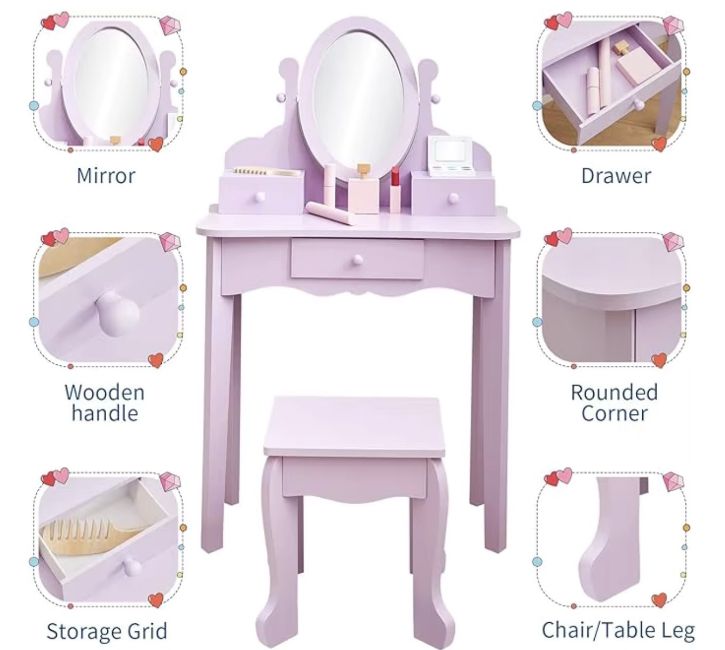 Let your child enjoy magical moments as they play, learn, and grow with their very own vanity set.