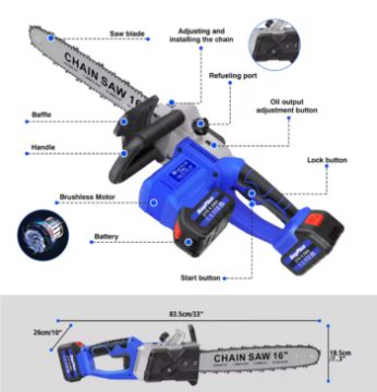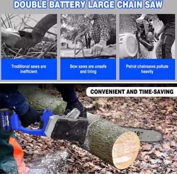Tackle heavy-duty cutting tasks with this powerful 16-inch cordless electric chainsaw, designed for efficiency, safety, and convenience. Equipped with a 5000W brushless motor, it delivers superior torque, long-lasting power, and virtually maintenance-free operation, making it ideal for felling medium-sized trees, cutting dense logs, or clearing branches and brush piles.