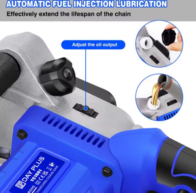 The chainsaw comes with two 16-inch high-carbon steel chains capable of speeds up to 13m/s, allowing fast, precise cutting with a cutting diameter of up to 15.7 inches (40cm). Its dual 4.0Ah lithium batteries provide 20–30 minutes of cordless runtime, while the upgraded oil filler unit with level display ensures smooth, consistent chain lubrication during operation.