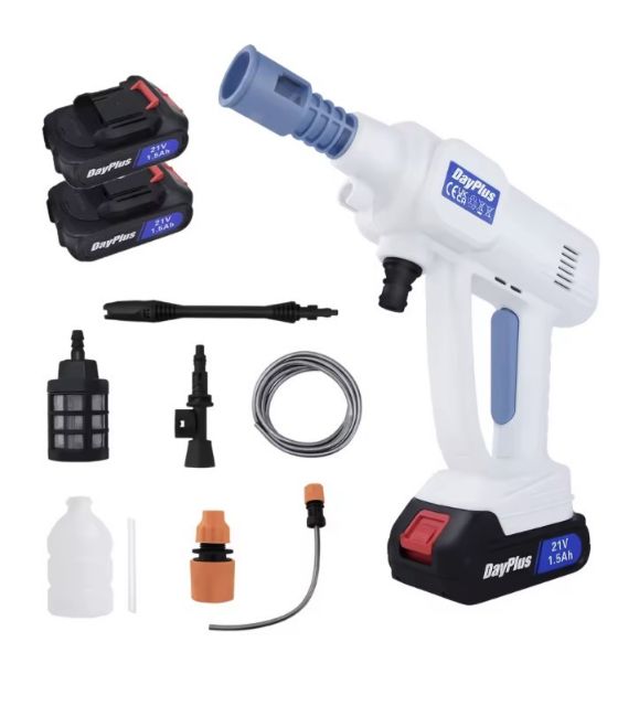 Powered by a 21V 1500mAh rechargeable battery, the pressure washer offers reliable performance with sufficient battery life for everyday cleaning tasks, including car washing.