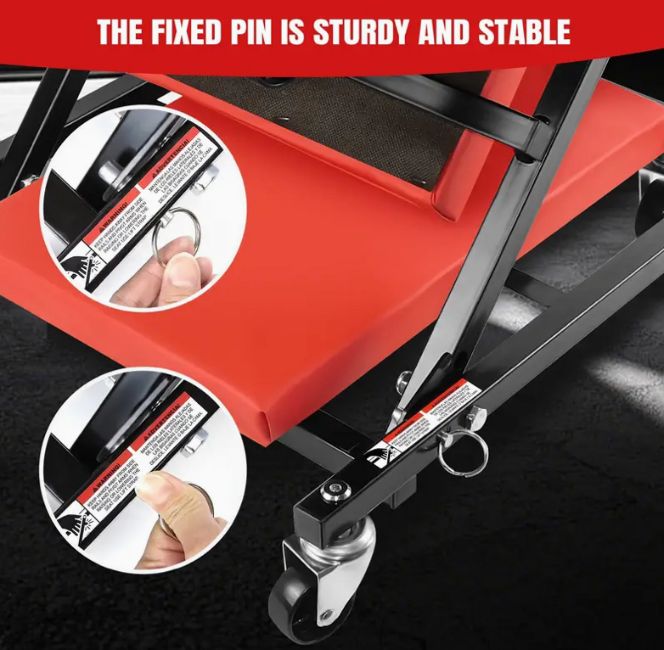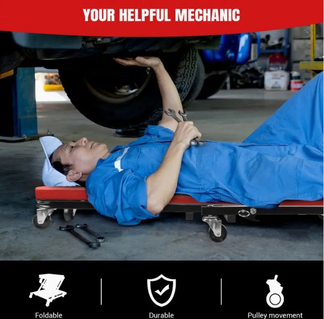 Equipped with 360° rotating caster wheels for effortless movement around your workspace. Glide smoothly under vehicles or roll between tools — no strain, no hassle. (Wheels are removable for easy maintenance.)