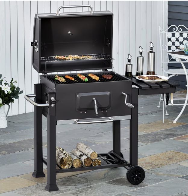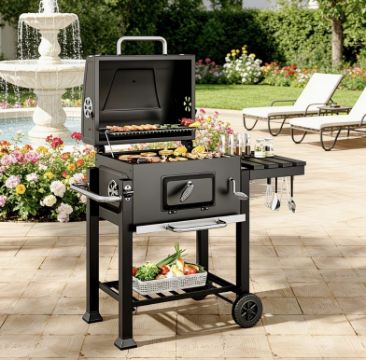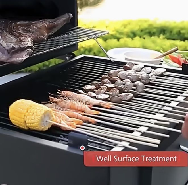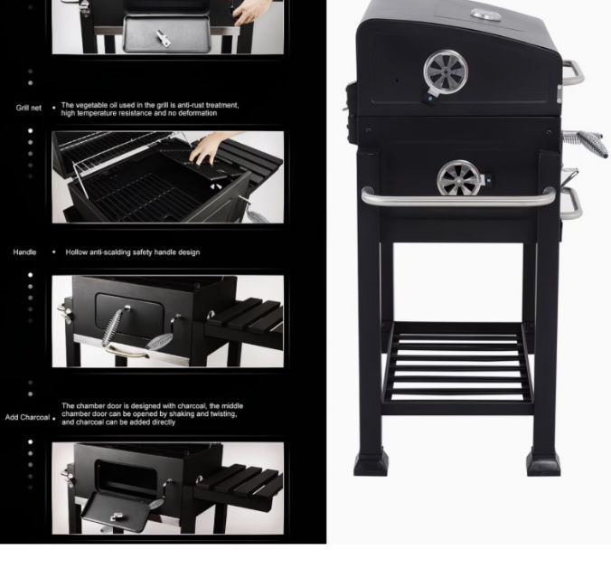• Adjustable Charcoal Tray: Easily raise or lower the heat using the side handle for precise control