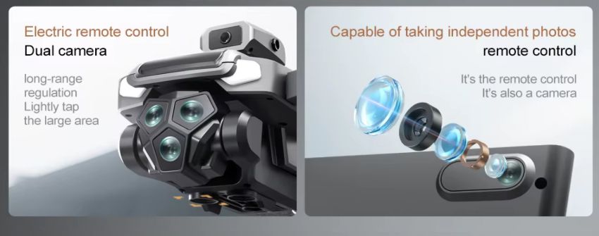 • 8K Ultra-HD Dual Cameras – Switch freely between horizontal, vertical, and overhead angles for cinematic shots.