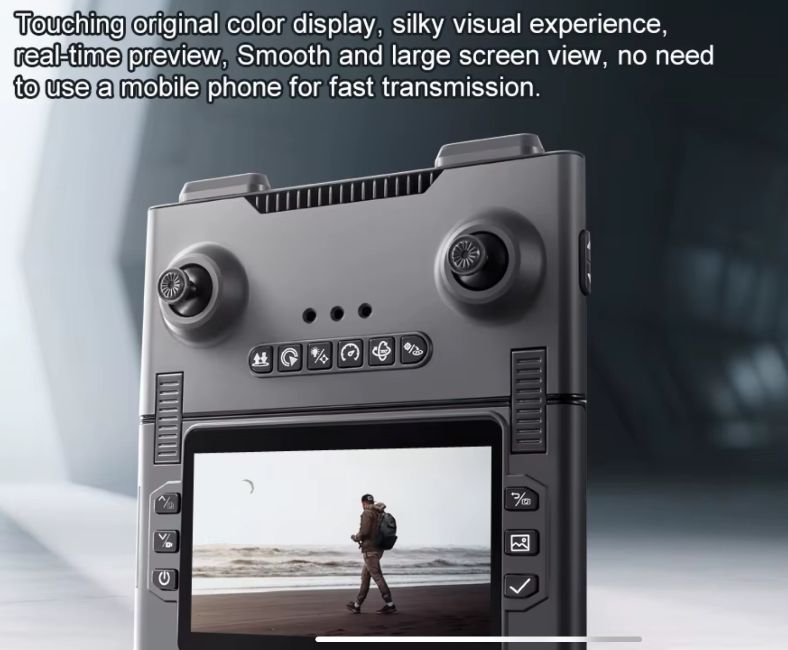 • Screen Remote Control – Built-in display with real-time FPV image transmission, no phone required.