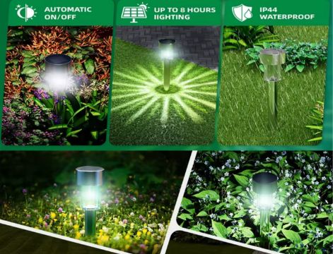 • Solar-Powered Efficiency: Harness the power of the sun to light your garden at night—no plugs, no cords, no ongoing costs.