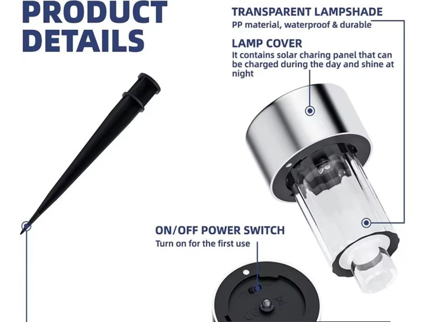 • Quick, Tool-Free Installation: Simply insert the stake into the ground and switch it on—no wiring or tools needed.