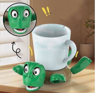 Place your cup or mug on the turtle’s back and watch its limbs lift up and its eyes widen—a playful detail that adds instant fun to your day.