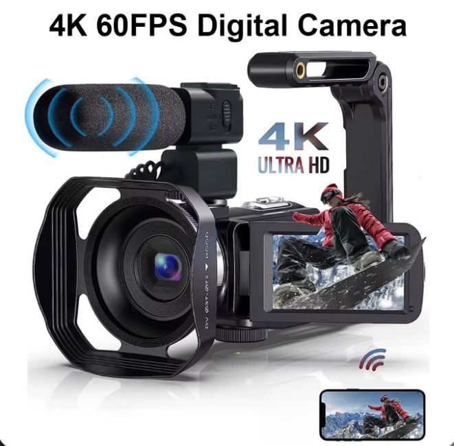 Capture ultra-smooth, crystal-clear footage with this advanced 4K 60FPS camcorder, featuring up to 48MP interpolated resolution and a 13MP CMOS sensor. Perfect for creators who demand detail, colour accuracy, and control.