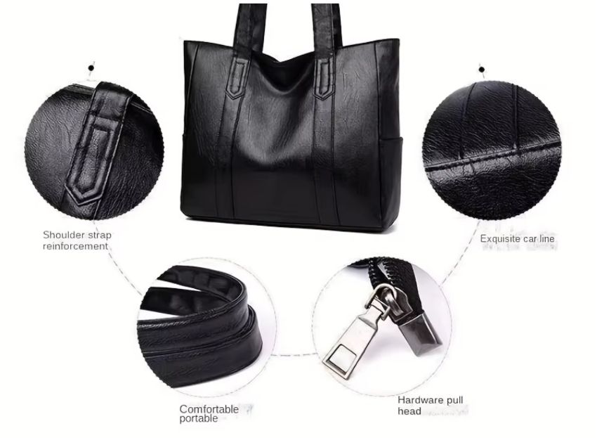 This durable PU tote features double handles and a secure zipper for safe, convenient transport.