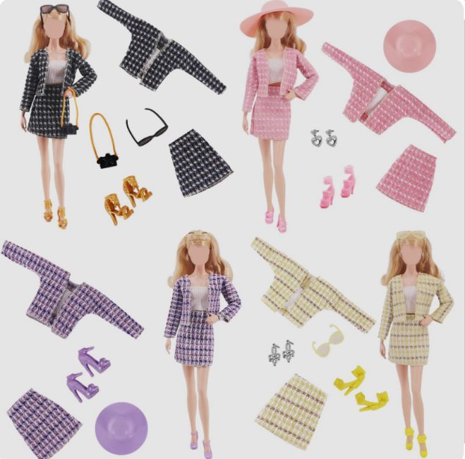 Each outfit is thoughtfully designed—combining modern trendy elements with classic doll fashion to create charming, eye-catching looks. From the plaid chic suit to elegant dresses and outerwear, every piece helps kids express creativity and style.