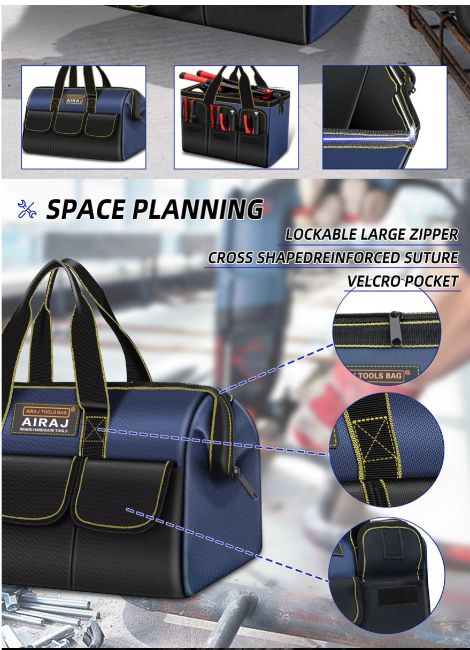 • Customisable: The Multifunctional Tool Bags are customisable, allowing you to add your own labels and organise your tools and equipment in a way that makes sense to you
