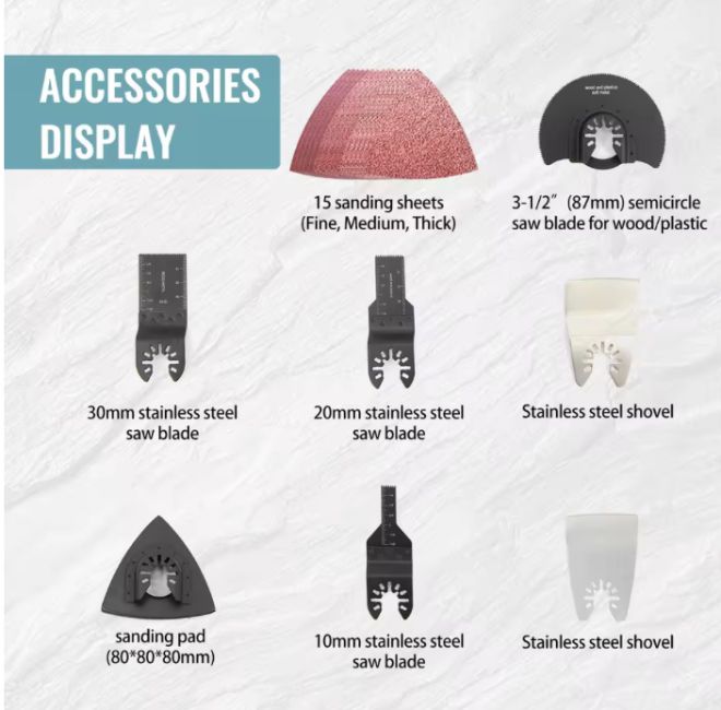 Supplied with 26 accessories, this multifunction tool is ready for woodworking, metalwork, renovation, automotive tasks, and general home improvement.