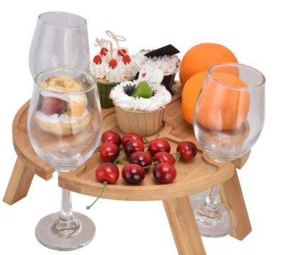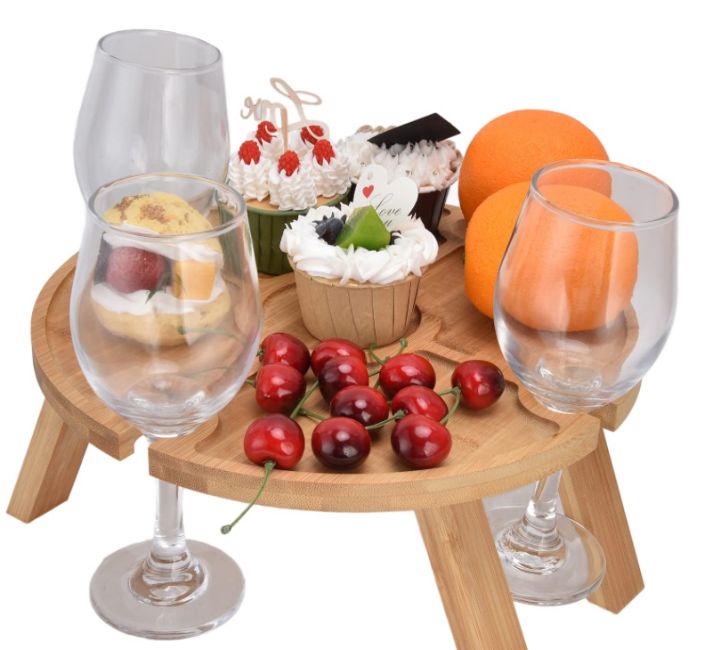 Title: Portable Wine Picnic Table Foldable Wooden Snack Tray With Glass Holder – Outdoor