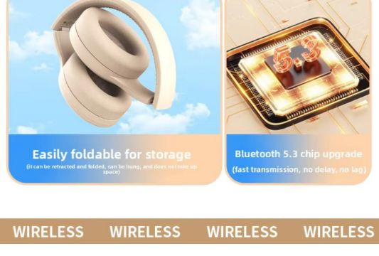 These Bluetooth over-ear headphones deliver powerful HiFi stereo audio, advanced noise reduction, and all-day comfort — ideal for music, gaming, travel, and everyday use.