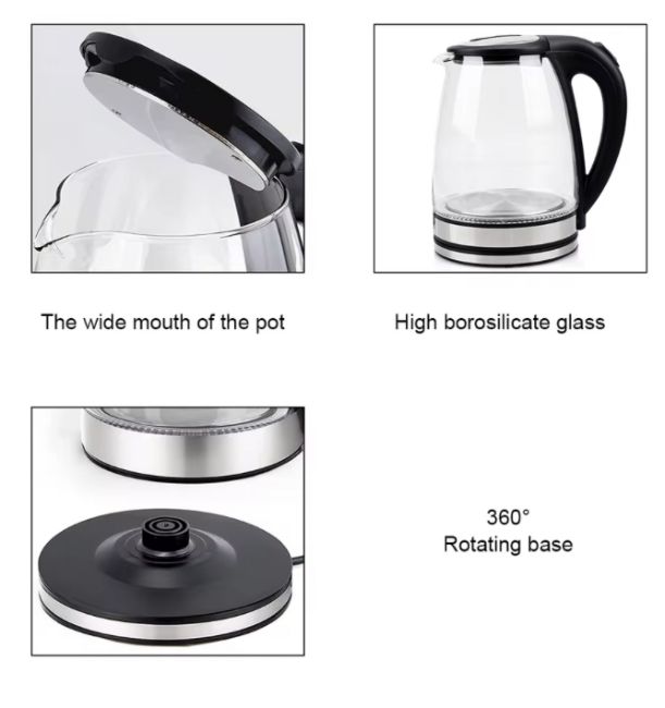 Experience elegance and efficiency with our 1.8L Electric Kettle, crafted from high borosilicate glass for a clean, modern look and superior heat resistance. With fast boiling capability and a glowing blue LED ring that illuminates while in use, this kettle is the perfect combination of function and design.