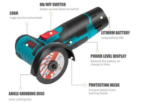Description: Micro Angle Grinder, Filling Grinder for Diamond Cutting, Wireless Power Tool, 12V