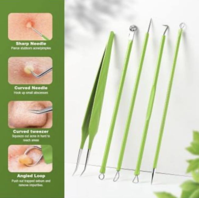 • Complete 6-Piece Set: מגוון of tools designed to target blackheads, whiteheads, and pimples of all sizes