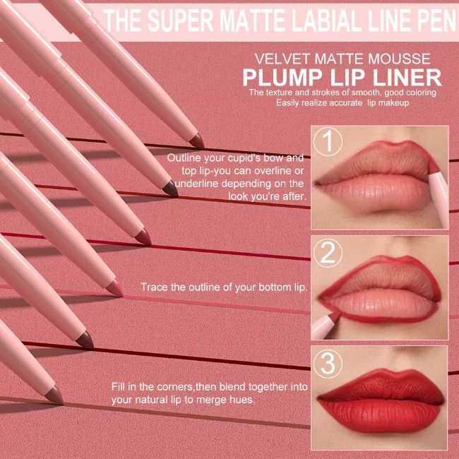 Designed for precision and long-lasting wear, these velvet matte lip pencils deliver rich colour, smooth application, and all-day confidence.