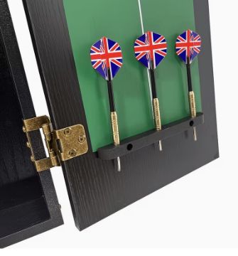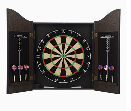 Featuring a stylish wooden cabinet and a high-quality dartboard, it’s ideal for casual games or competitive play.