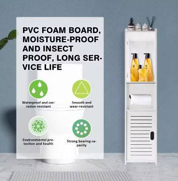 Durable & Stable Structure -This free-standing bathroom cabinet is built of advanced and sturdy new high-tech environmental protection material PVC, with a high carrying capacity and a single-layer maximum load-bearing capacity of 5kg. Waterproof and moisture-proof, oil-proof and flame-retardant, can be used in wet areas and kitchens.