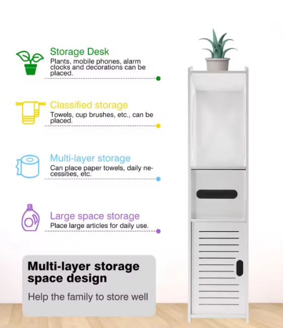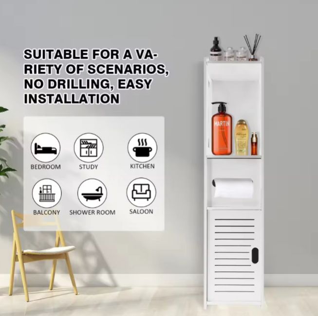 Product Type: White tall large-capacity Waterproof Free standing Bathroom Storage Cabinet with 1 door