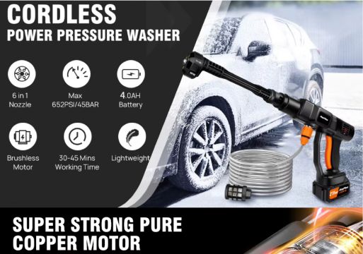Tackle dirt, grime, and tough outdoor messes with ease using our Cordless Portable Pressure Washer—a compact yet powerful solution for cars, patios, bikes, windows, and more.
