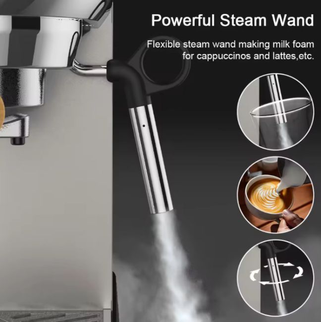 The adjustable professional milk steam frother allows you to craft silky, dense microfoam with ease—ideal for cappuccinos, lattes, and other speciality drinks.
