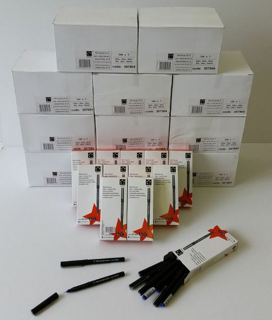 1728 BLUE FIBRE TIP PENS 0.4mm. 5 Star Branded. (144 Packs Of 12)