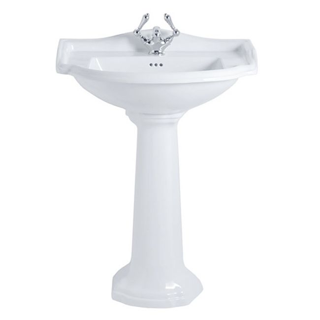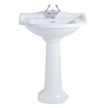 Basin & Pedestal 3 Taphole List Price £499 each New Stock in box Uk Made Width = 660mm Depth = 500mm Height = 830mm Note :- Picture Shows 3 Tap Holes You are bidding for the basin and pedestal only ( there are no taps or anything else included ) Collection only as Fragile goods