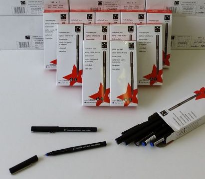 1728 BLUE ROLLERBALL PENS 0.4mm. 5 Star Branded. (144 Packs Of 12)