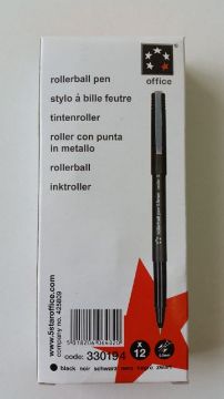 1728 BLACK ROLLERBALL PENS 0.4mm. 5 Star Branded. (144 Packs Of 12)