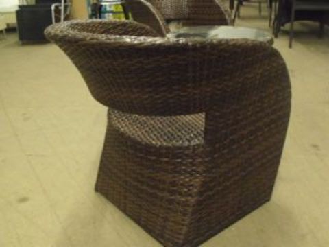 3 piece all weather multi brown rattan duo set with drum table with clear glass top