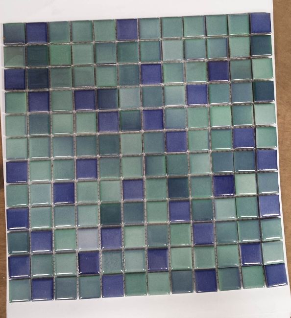 10 x Porcelain Mosaic Tiles Total of 10 Tiles in this Lot Tiles Size = 300mm x 300mm Blue / Green ( Picture is showing 1 of the tiles) We prefer collection but delivery can be arranged at extra cost but will be at your own risk