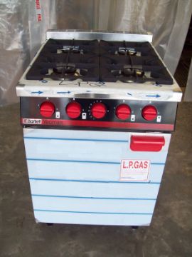 Bartlett Yeoman 4 burner LPG Range nat gas conversion kit supplied if required, 1/2" connection 21.4kw output dxwxh 810x600x945 o/a 100kg weight, 2 internal shelves, all spares still available
