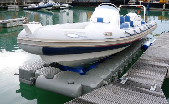 Drive-on/Drive off floating dock for RIBs and other boats.