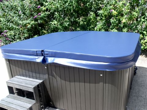 Deep Blue Spa cover with spa lifter for easy removal and storage