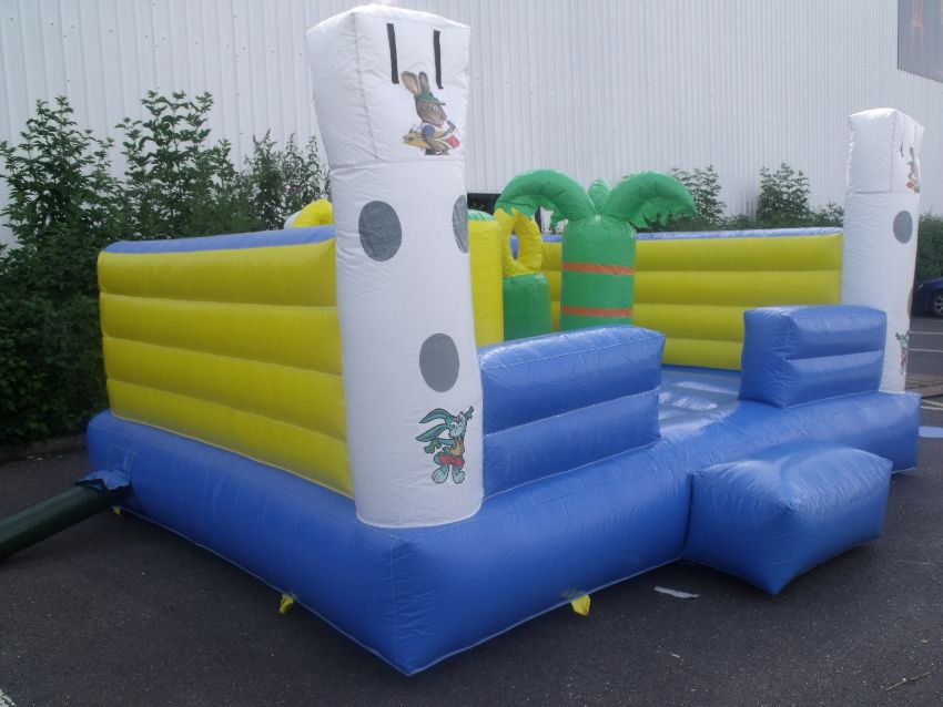 brand new rabbit professional bouncy castle with built in inflatable obstacles and new boxed blower
