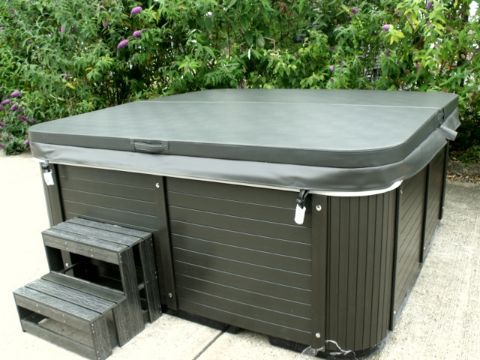 Deep grey Spa cover with spa lifter for easy removal and storage