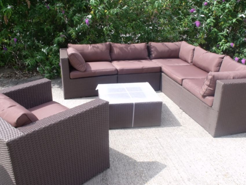 QUALITY 7 PIECE BROWN FLAT WEAVE ALL WEATHER RATTAN, ALUMINIUM WELDED FRAME,