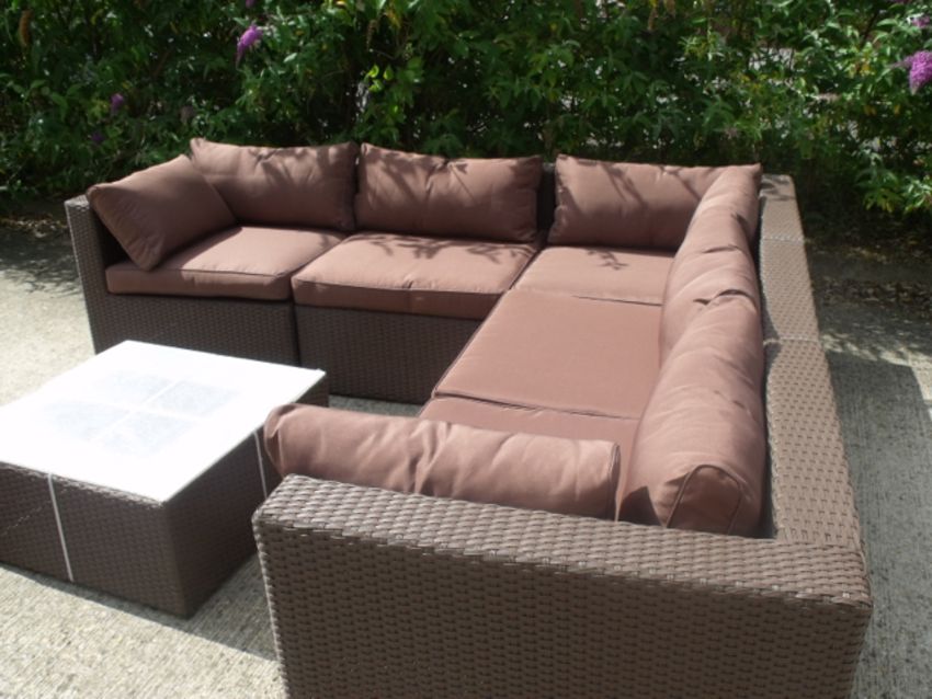 QUALITY 7 PIECE BROWN FLAT WEAVE ALL WEATHER RATTAN, ALUMINIUM WELDED FRAME,