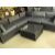 6 piece all weather black rattan corner sofa set , all aluminium framed with deep silvery grey seat and back cushions comes complete with square coffee table with tempered glass top