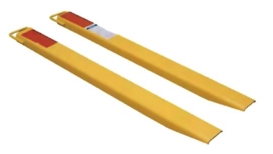 Fork extensions BRAND NEW length of extension 48 inch. fork width 4 inch. The simple but effective way of lengthening your forks to handle longer loads safely, without causing damage to the load. Heavy duty steel construction, fits onto forks up to 50 mm (2”) thickness. Steel retaining strap prevents fork extensions from sliding off forks during use. Sold in pairs only.