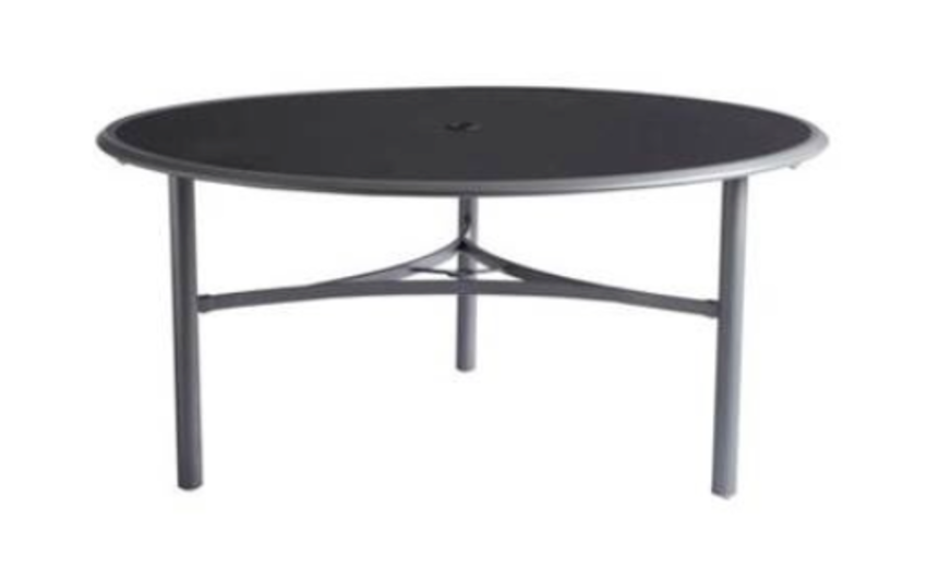 Seattle Round 6 seater table - Black glass top - opened and checked, slight dent in rim